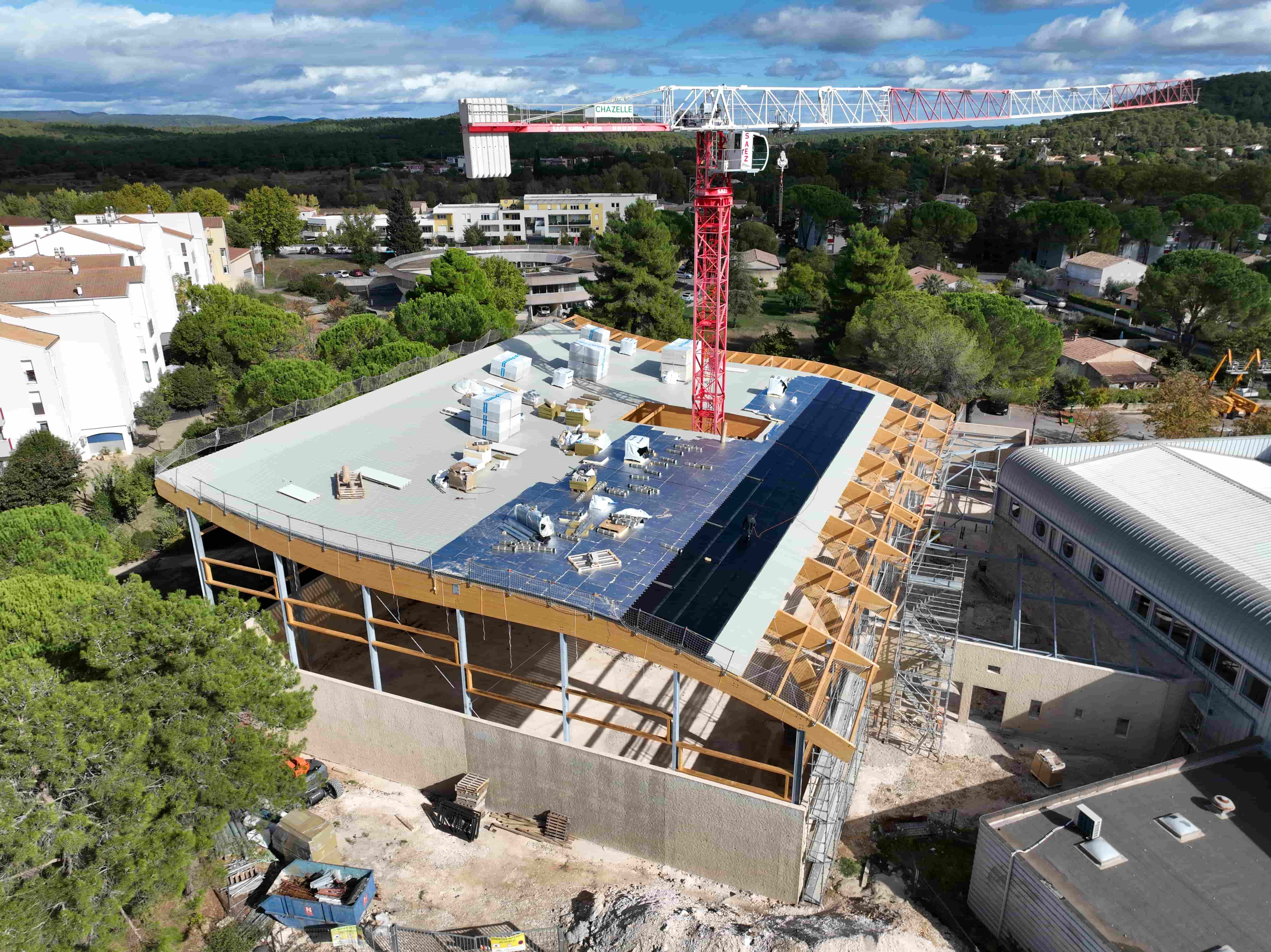 Depuis quelques semaines, nos équipes Sud-Est Étanchéité 34 (Castries) sont à pied d’œuvre pour l’extension du gymnase communal à Saint Mathieu de Treviers.