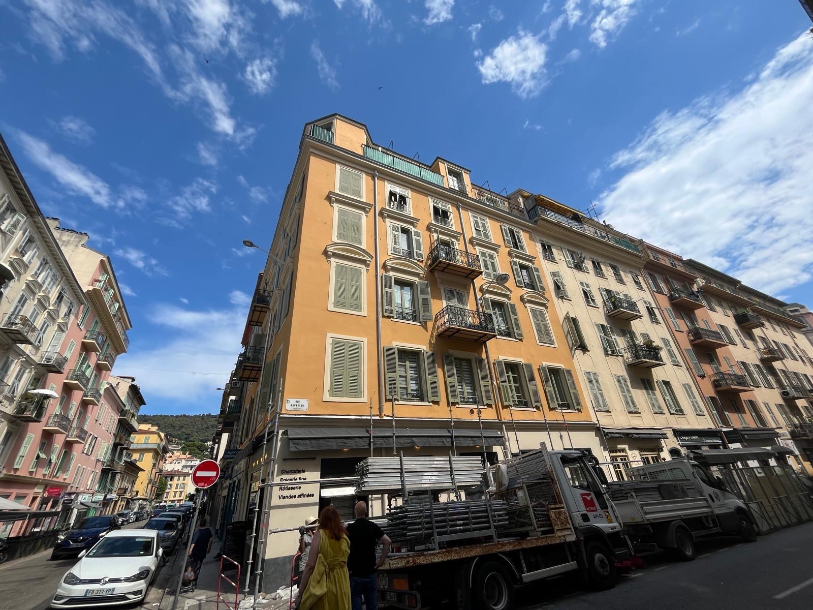 Ravalement de la façade d'un immeuble rue Bonaparte à Nice quartier du port