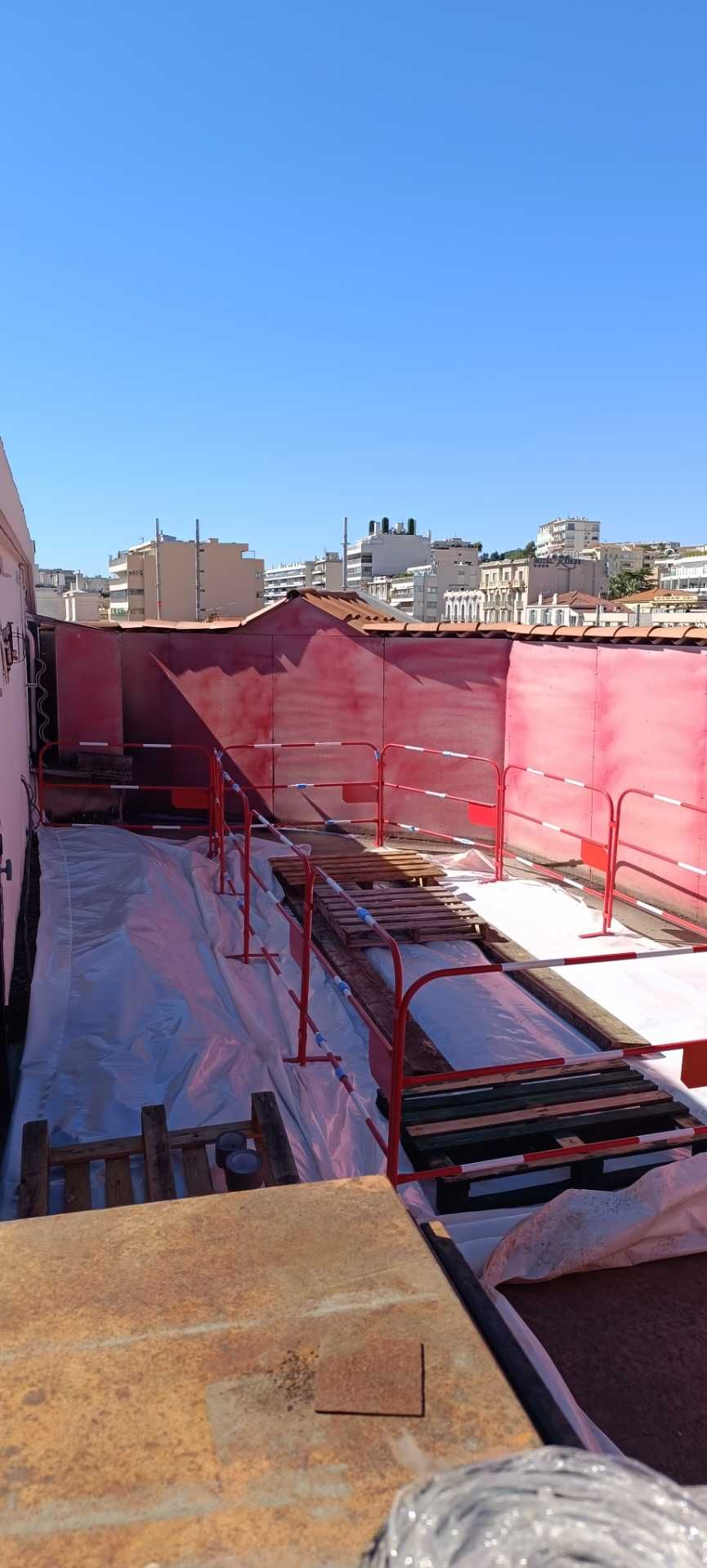 - La première zone se situe sur le bâtiment principal du magasin Monoprix, où nous avons procédé à la dépose des anciennes plaques ondulées avec tuiles, ainsi que des plaques planes en bardage vertical.
