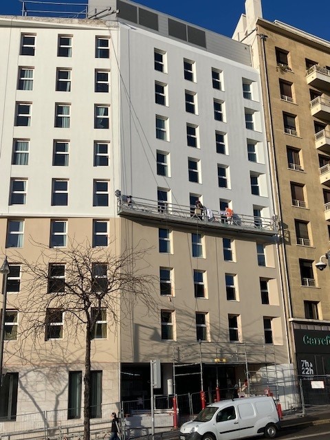 Travaux de peinture et de ravalement sur la façade du Novotel Saint Charles à Marseille